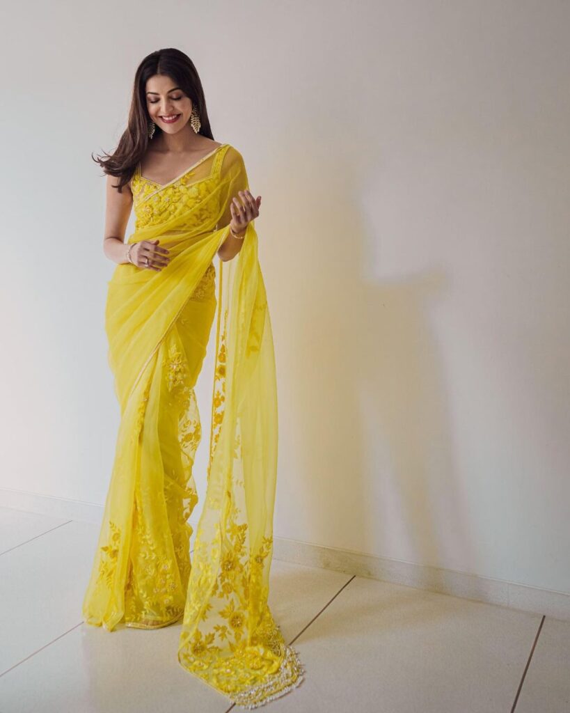Going the skimpy way is never easy, but learn a thing or two from Kajal Aggarwal on how to ace that low waist plus sheer combo like an absolute boss. The next time you have a sheer saree, pair it with a really basic blouse to look straight out of a fairy tale!