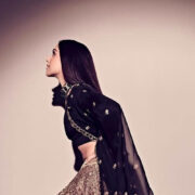 What’s not there to love about this look? The gold and black combo, the crushed effect, the shoulder-grazing earrings et al. Everything is impeccable and so tastefully styled! Try this look if you’re heading out for a plush evening soiree where it’s all about contemporary