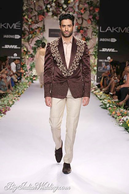 The grooms who wish to jazz up the gentleman suit can opt for an embroidered or heavily embellished jacket to make a statement.