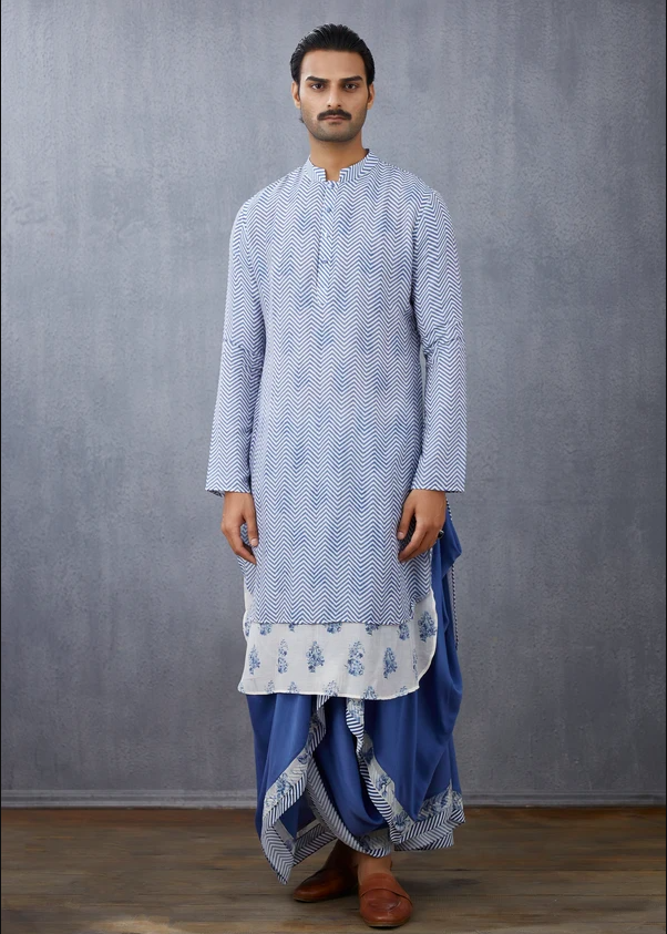 Pick a pastel patterned shade for the kurta and team it with a darker solid dhoti bottom giving your mainstream kurta a trendy twist, and you are all set to channel your inner Bajirao to woo your Mastani.